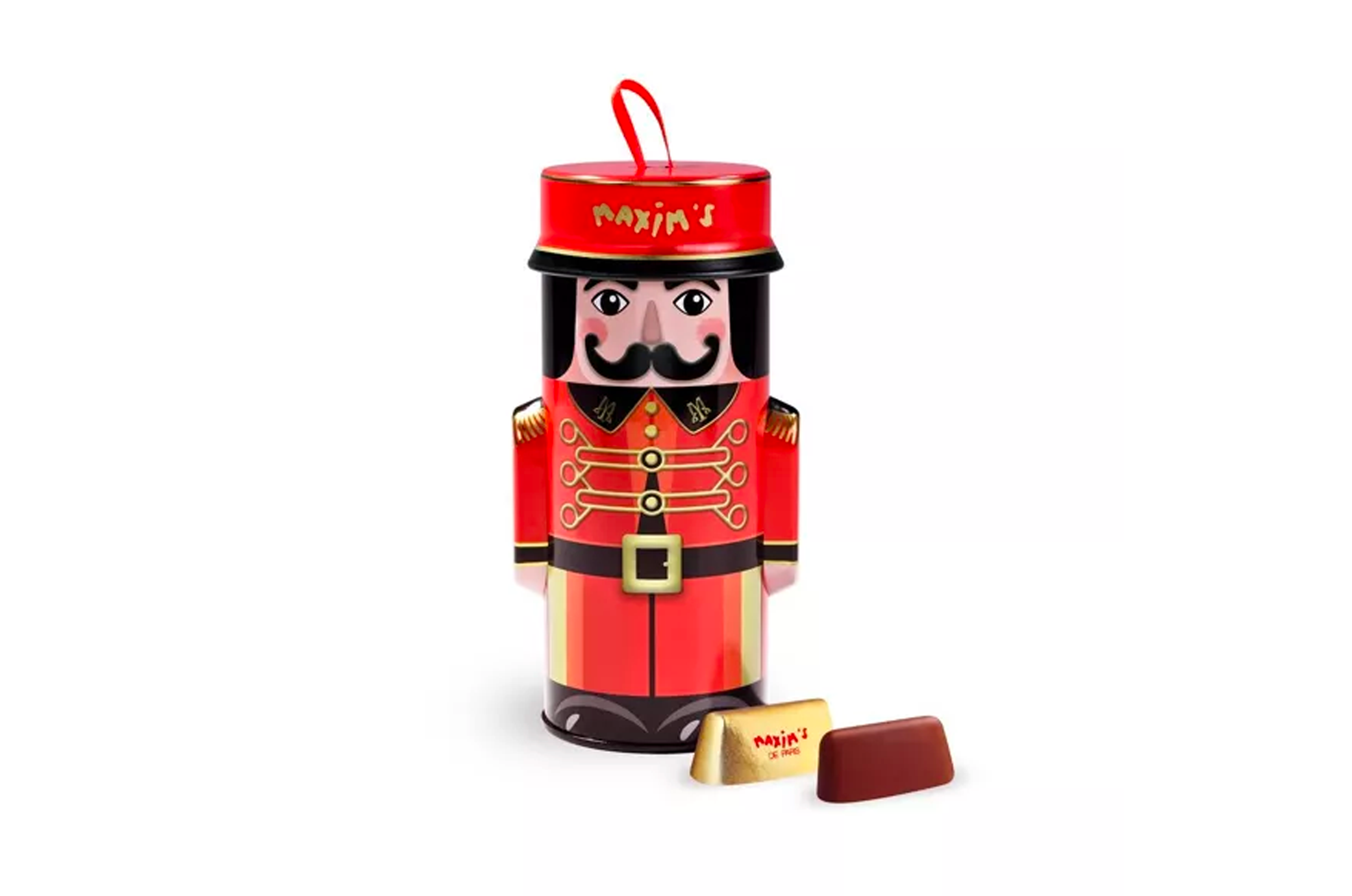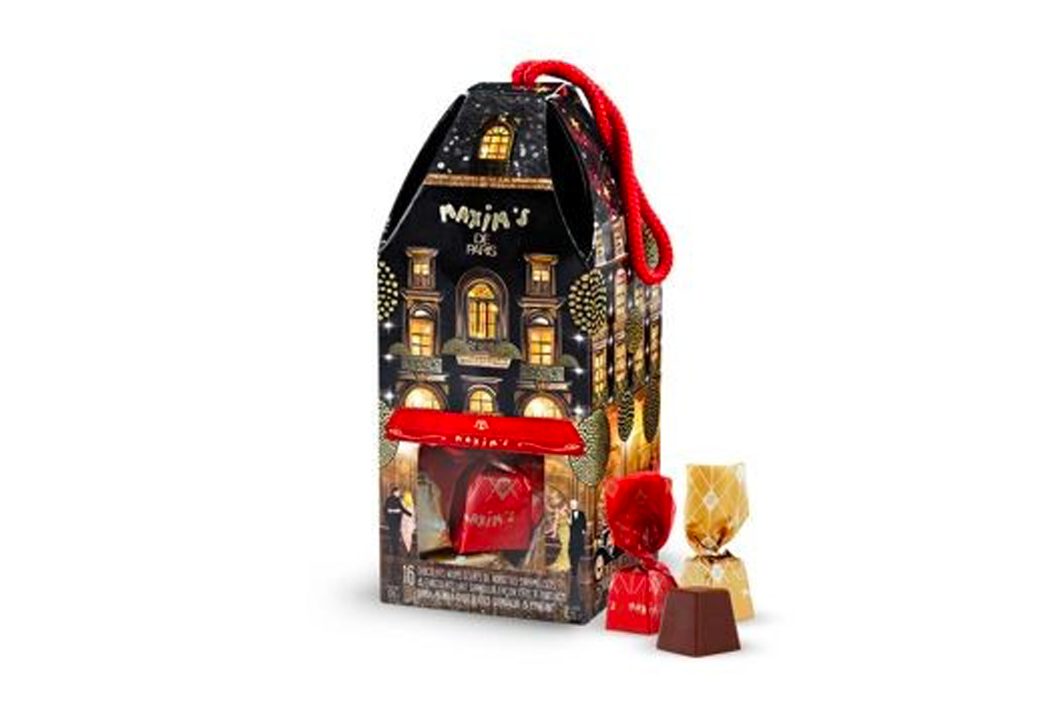 16 chocolats inédits dans une box Maxim’s au design Noël et