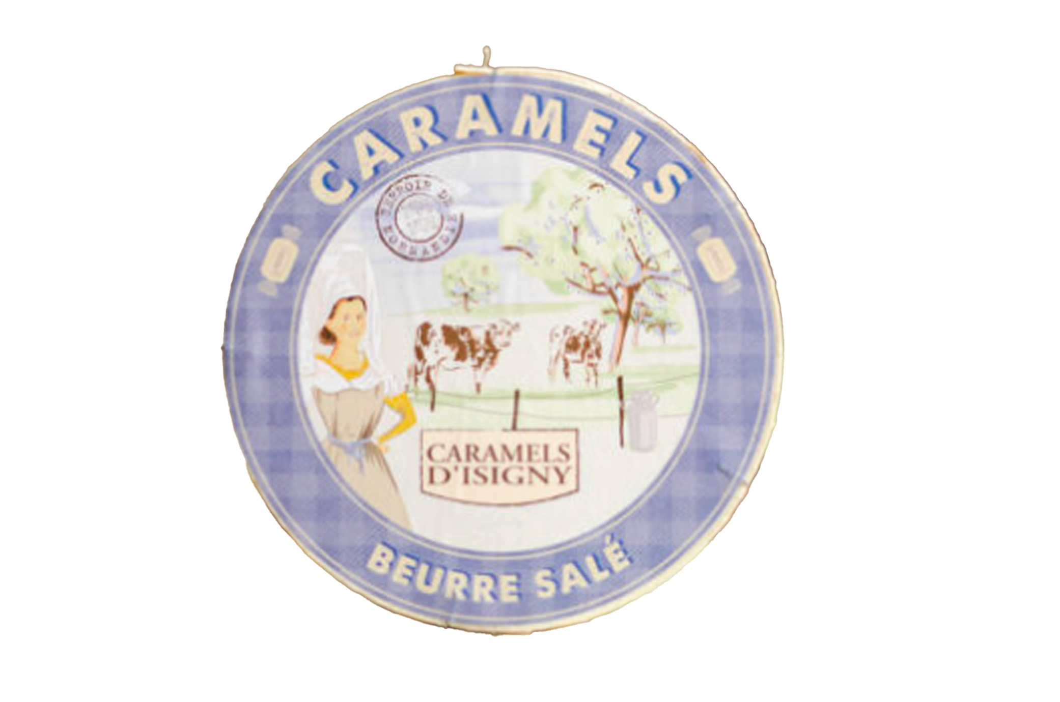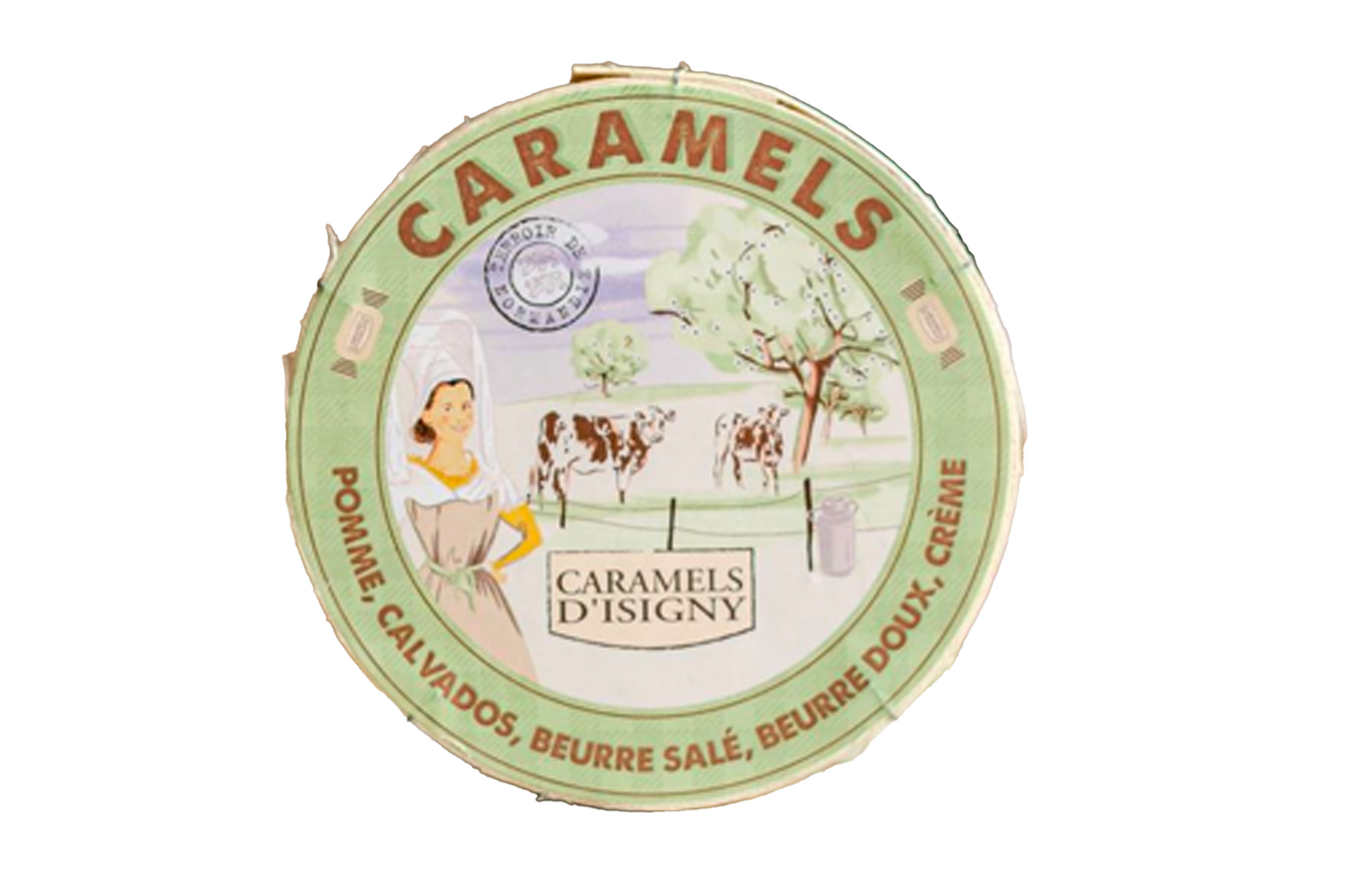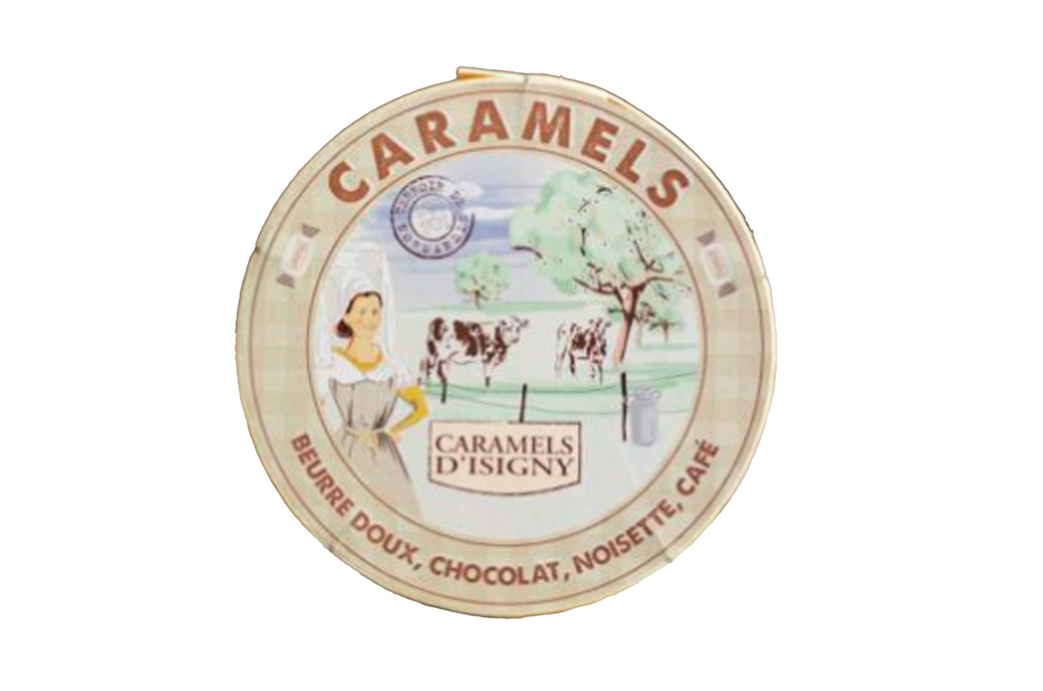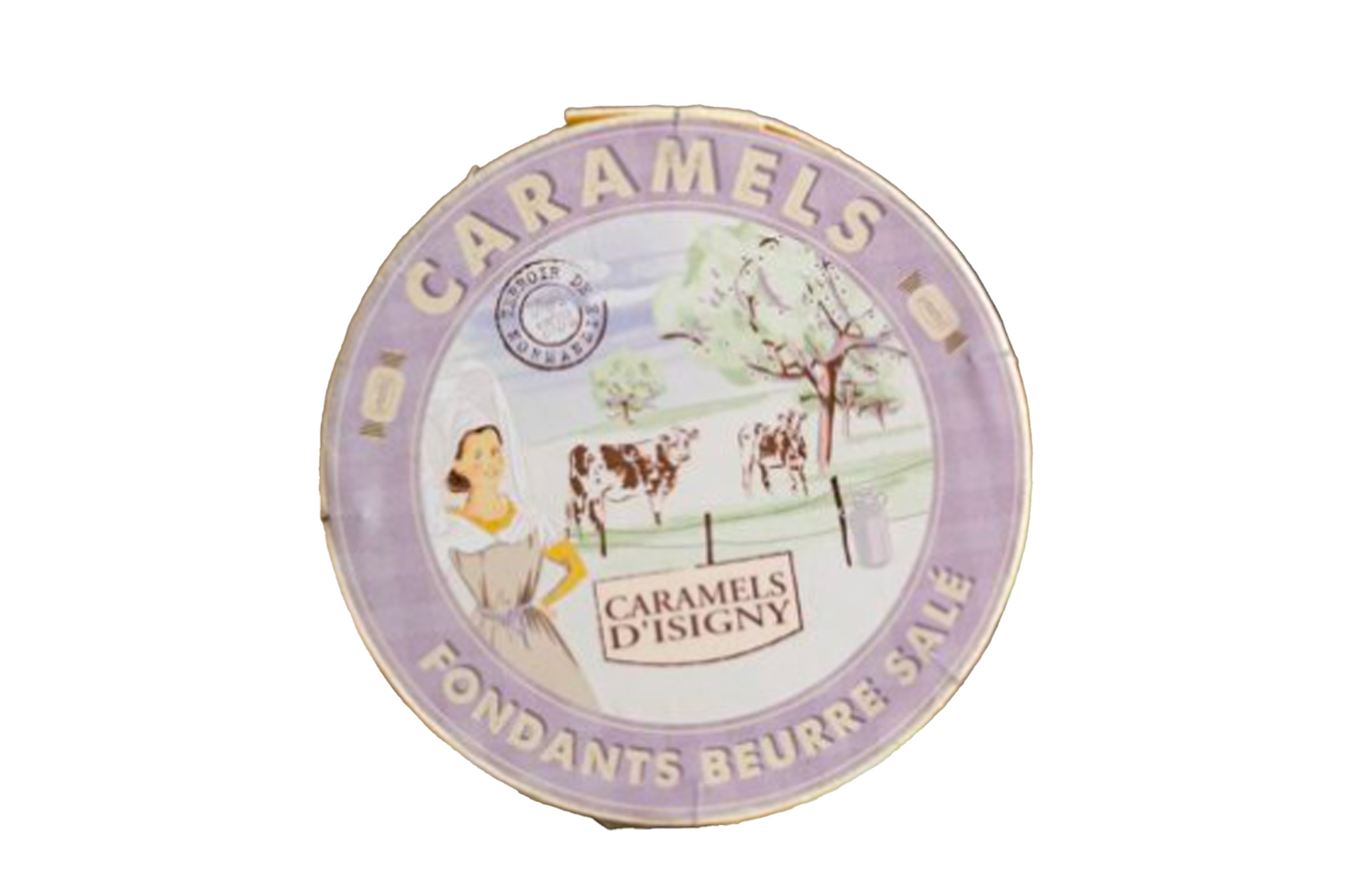 Vous trouverez dans cette boîte à Camembert, non pas du fromage, mais nos Caramels assortiment "Tradition" !!!