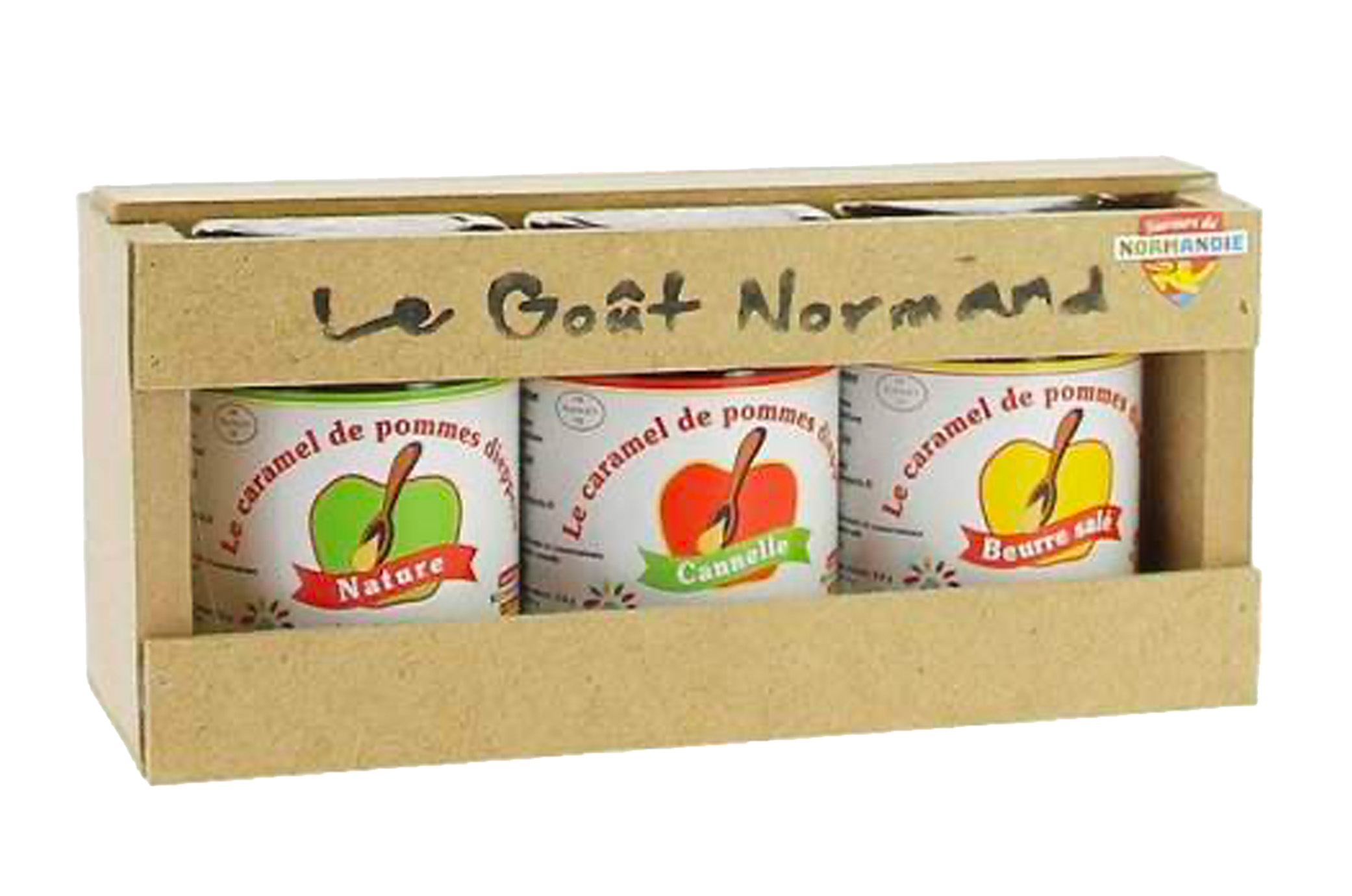 propose trois parfums distincts de caramel de pommes : nature, au beurre salé