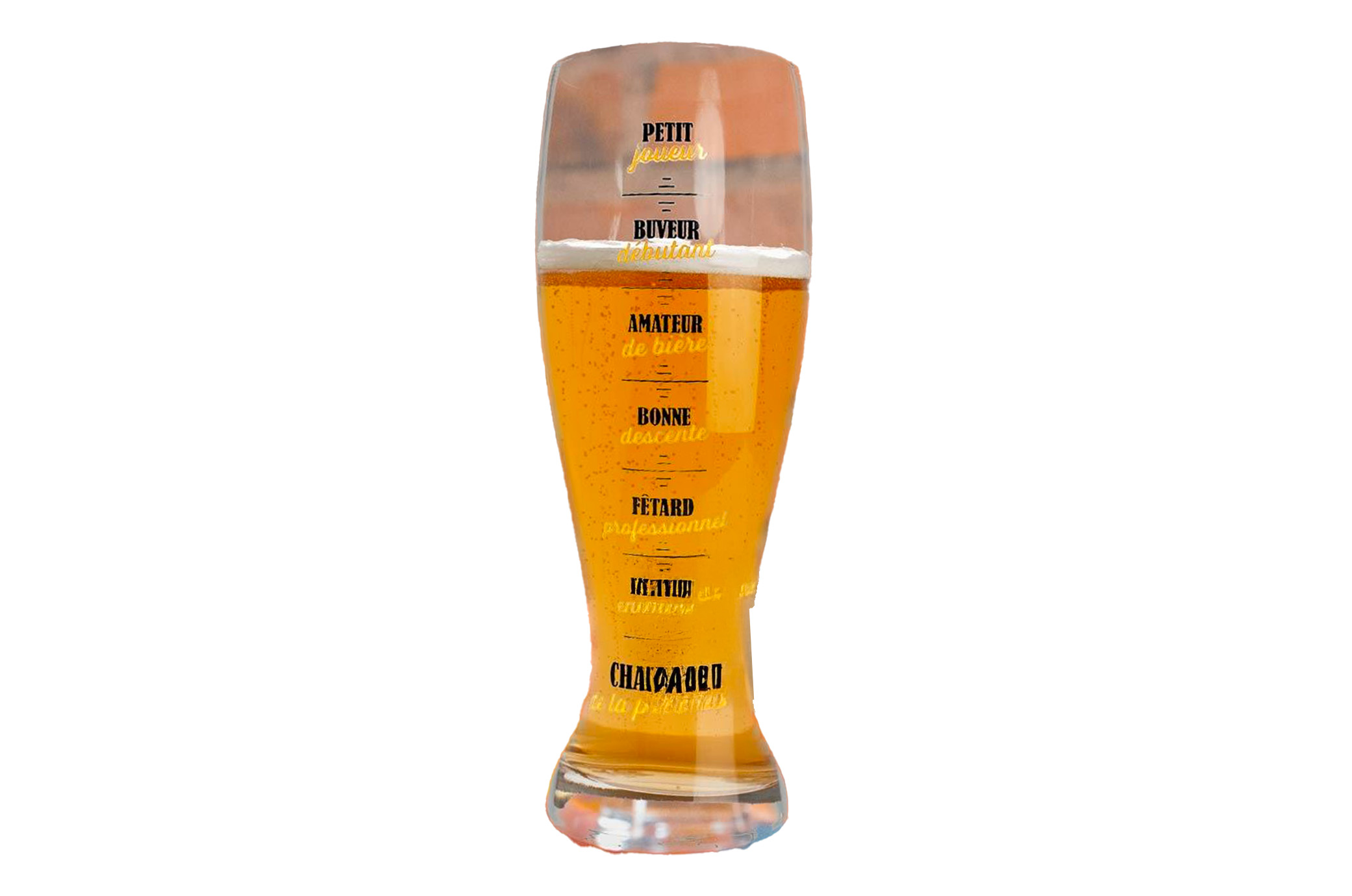 Ce verre XXL de 1,5L avec les mentions graduées du "petit joueur" au "champion de la pression", ce verre vous sera indispensable pour un moment convivial entre amis.